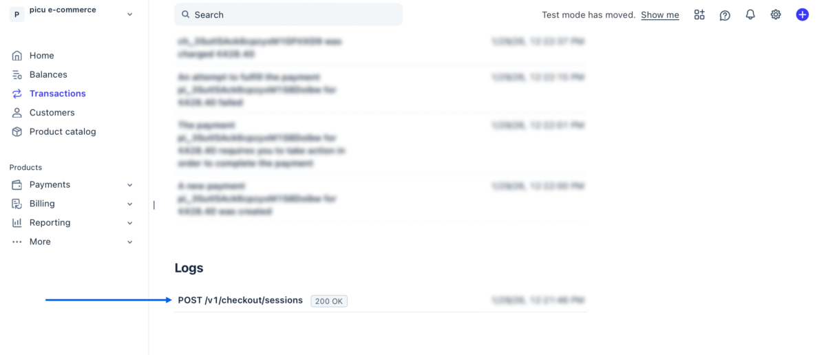 Check Stripe Transaction Logs