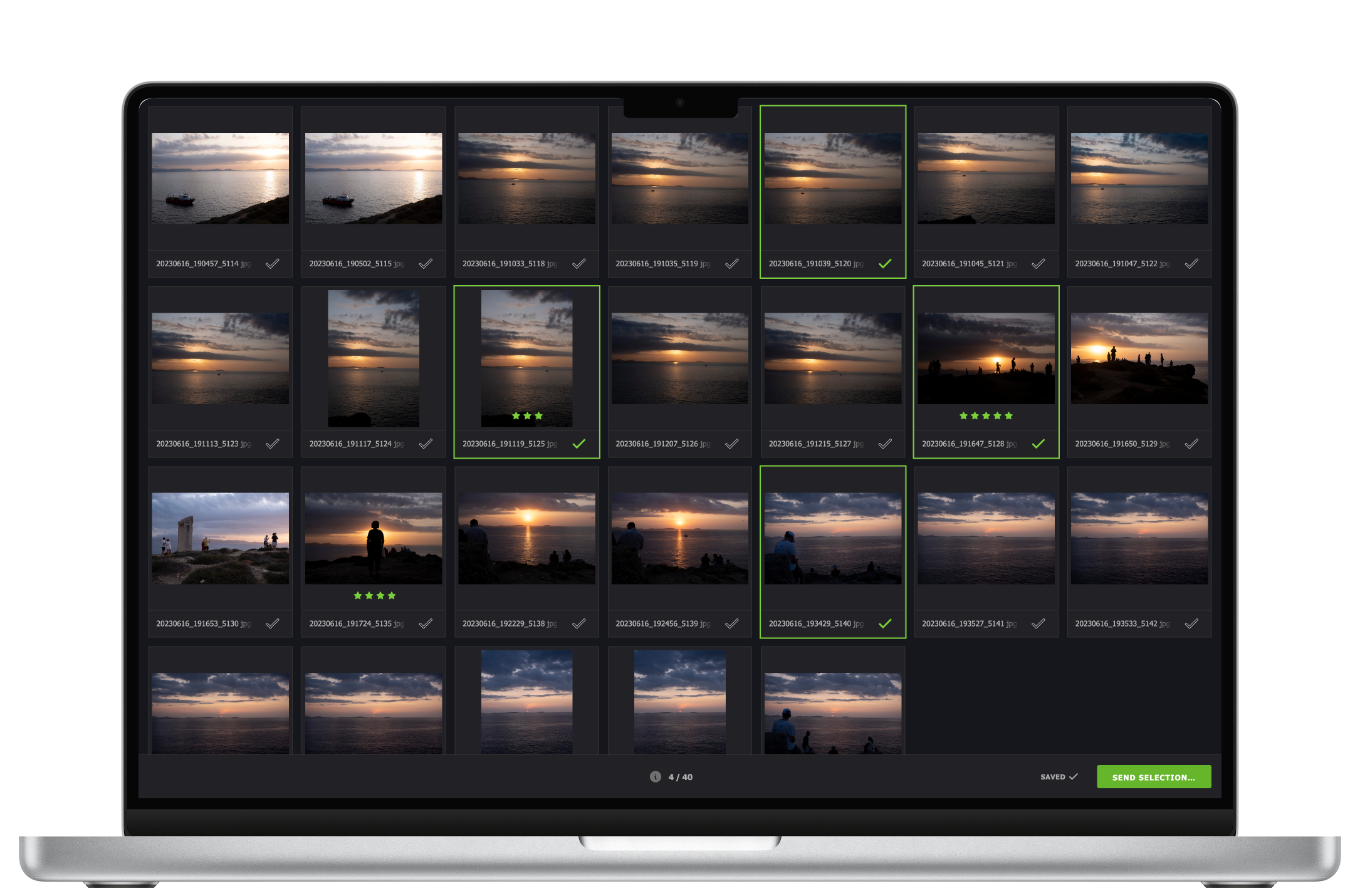 Let your clients apply star ratings to organize images during proofing.